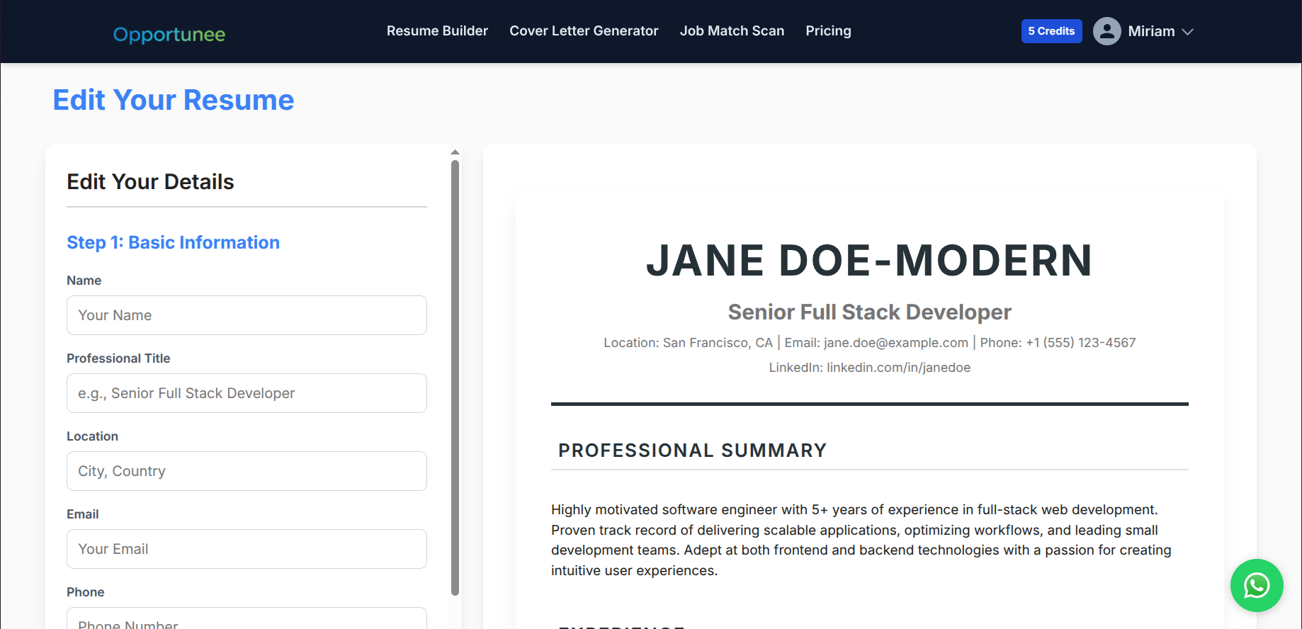 • Targeted Narrative: Crafts a compelling story matching your skills.