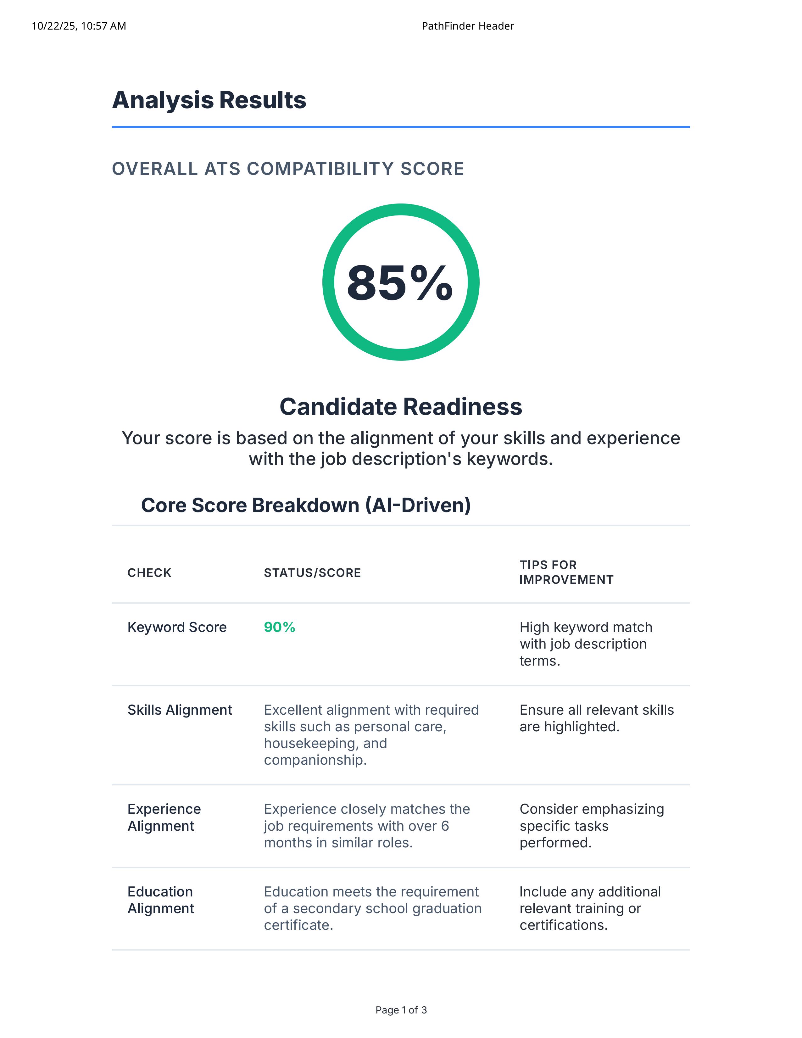 • Formatting Integrity Check: Detects elements that confuse ATS systems.